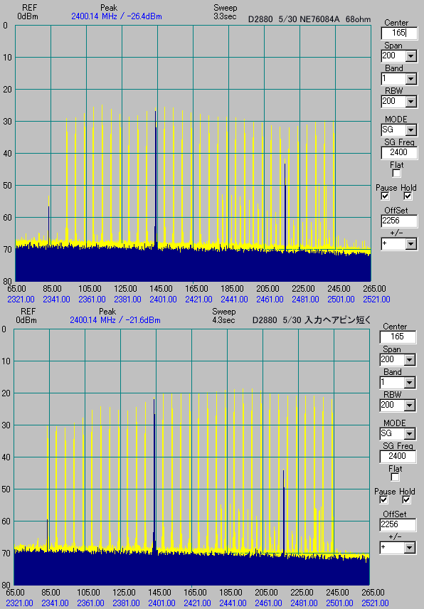 - さすが。2880もともと広帯域なので、Top/BPFをいじって狭帯域にすれば、GDになりますね。私は、BPFしかいじってないのでだめですね・・・。めんどくさがり屋より。 - ja0caw (2006/09/24 21:25)