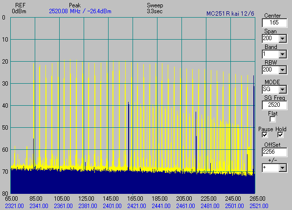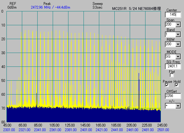 また、細い線で長くすると2480MHz位に発振と思われるピークが出てきました。