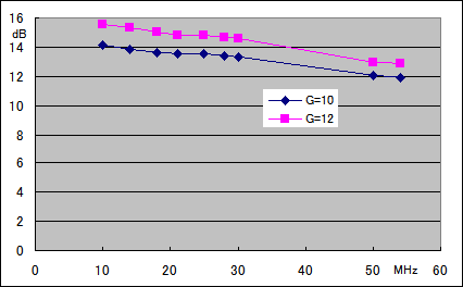 昔、2sc1969*1の50MHzAMPを作ったときは、Gain6倍で15Wでていたのに。広帯域で悪くなるようだ。
