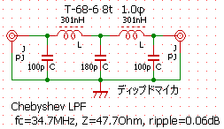 マイカコンデンサは高性能で知られ、LPFに使うと挿入損失を低くできるそうだ。