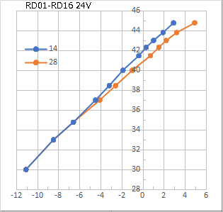 電圧を上げると直線性も良くなった。RD01-RD16_24V.png